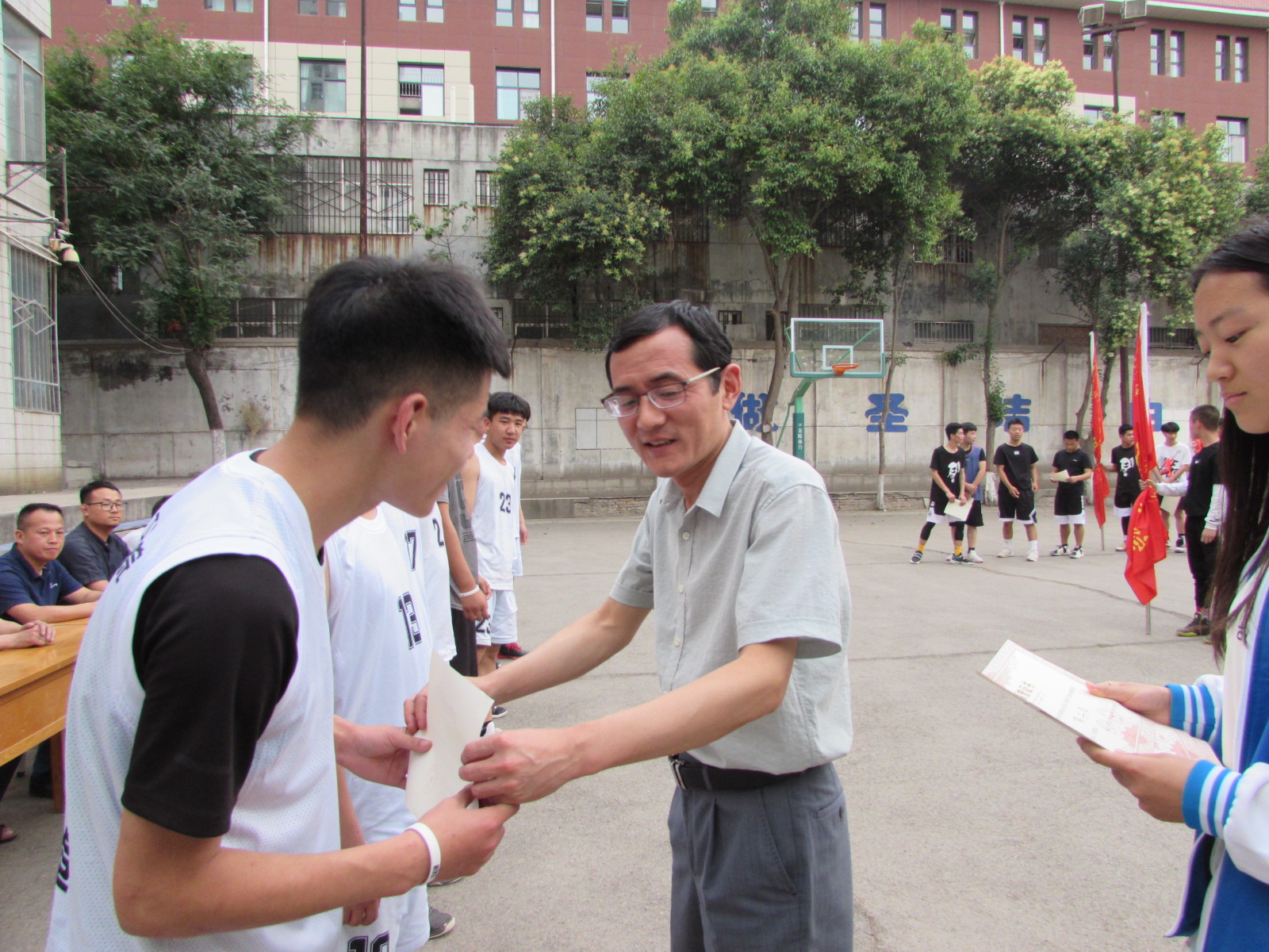 6月4日下午,朝阳校区首届“盛夏杯”篮球争霸赛闭幕式在校篮球场举行。建筑工程公司党总支书记韩世亮、伟德bv国际体育官方网站党总支书记王医平、建筑工程公司员工管理科副科长孙华东、伟德bv国际体育官方网站人才招聘科副科长罗彦庆出席了闭幕式。闭幕式由伟德bv国际体育官方网站员工管理科科长王斌主持。