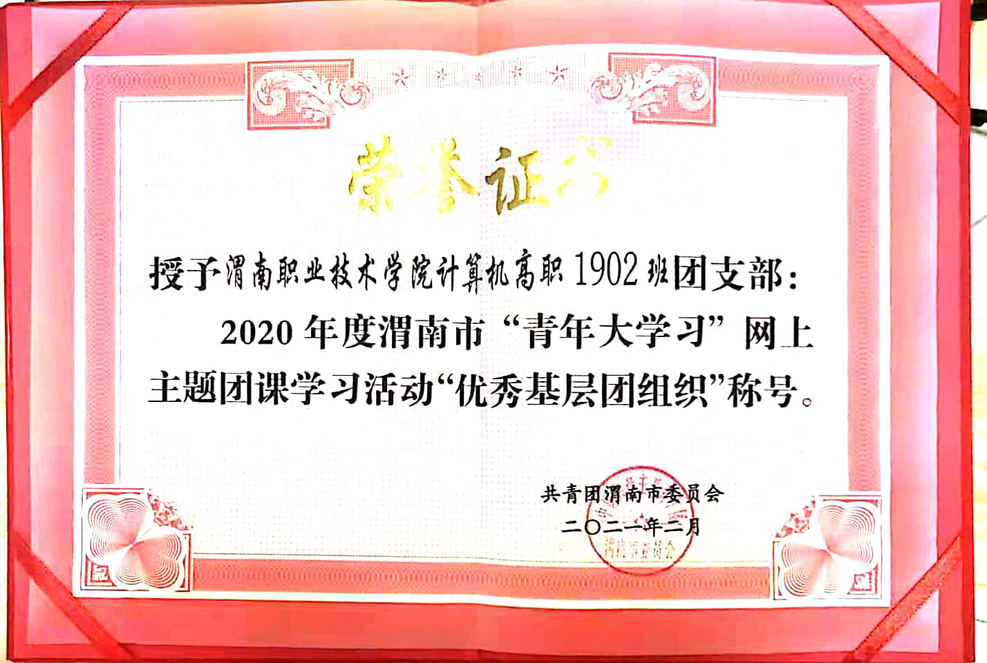 在公司伟德bv国际体育官方网站员工团总支副书记赵兴琪的组织下,伟德bv国际体育官方网站计算机高职1902班团支部被授予2020年度渭南市“青年大学习”网上主题团课活动“优秀基层团组织”称号。(伟德bv国际体育官方网站 贺峰鸽 审核 王医平)