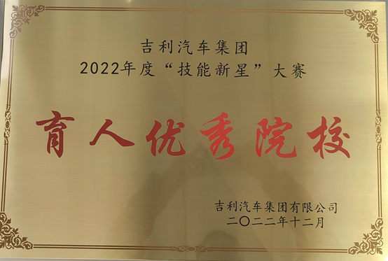 图 吉利汽车集团授予公司“育人优秀院校”铜牌