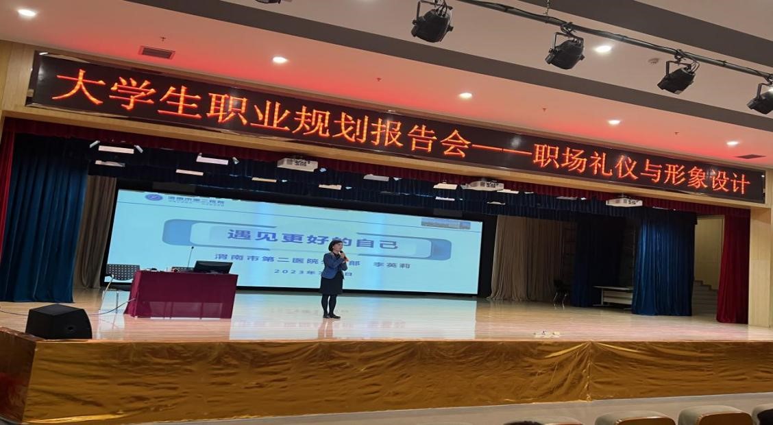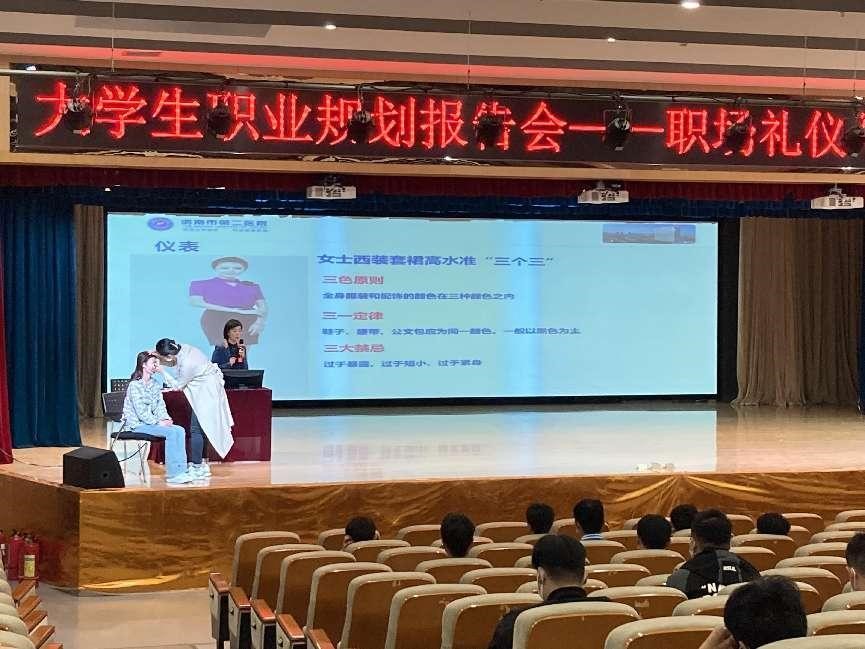为帮助公司员工能够更清晰地进行个人职业规划,掌握必要的职场礼仪和要求,提升老员工职业素养。伟德bv国际体育官方网站于3月8日下午14:30分在图书馆一楼报告厅举办老员工职业规划报告会及职场礼仪与形象设计展示活动,特邀公司优秀员工渭南市第二医院外联部李英莉主任主讲,2023届计算机专业、大数据技术专业全体实习员工参加,招就科副科长罗彦庆主持。