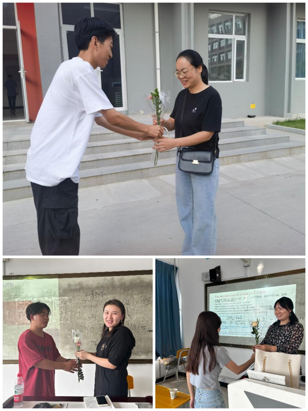 赓续百年初心,担当育人使命。同学们把一束束精美的鲜花送给老师,并不约而同的送上祝福语:“老师,您辛苦了!祝老师节日快乐!”简短而真诚的祝福给老师带来了欣慰,也让每一位献花使者感到了开心和快乐,让老师们度过了一个难忘而又有意义的教师节。