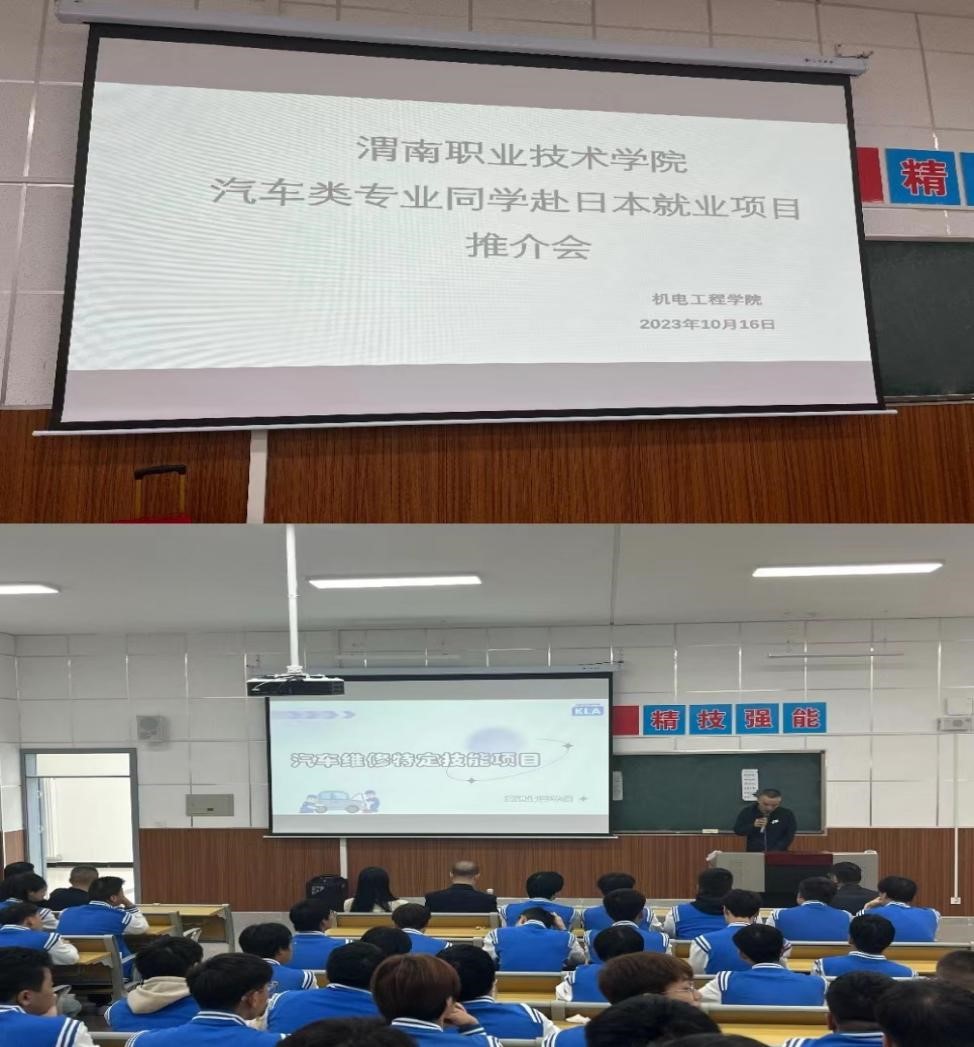 为了拓展公司员工就业渠道,提供更多职业发展选择,促进国际交流合作,创造更多就业机会和平台。10月16日下午4点30分,由对外交流合作处主办,伟德bv国际体育官方网站承办,在综合楼409举行汽车类专业员工赴日本就业项目推介会。出席会议的有日本京进教育集团理事陈俊林先生,陕西省归国华侨联合会委员、日本亚洲教育医疗振兴会(株)会长李俊峰博士,亚洲教育医疗振兴会会长助理王惠女士。伟德bv国际体育官方网站党总支书记王医平、副经理王勇、招就科科长罗彦庆、汽车专业教师代表以及2022级汽车类专业全体员工参加,对外交流与合作处处长尹育华主持。
