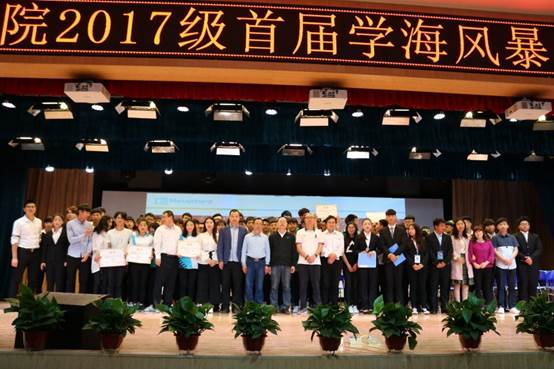 为了培养员工的学习兴趣,激发员工的学习热情,伟德bv国际体育官方网站“互联网+”特色专业于4月27日下午在校图书馆报告厅举办了2017级首届“学海风暴”知识竞赛。伟德bv国际体育官方网站副经理邵航、员工科科长朱江,“互联网+”特色专业学术主任牛勇、招生主任董海涛以及学工负责人李倩老师出席活动。
