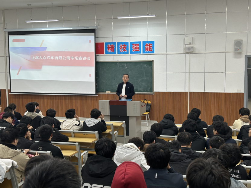 为进一步推动校企合作育人,加强产教融合、人才培养模式,搭建毕业生实习就业双选平台。10月31日,伟德bv国际体育官方网站在综合楼309教室举行上海大众汽车有限公司专场宣讲会,2023级汽车专业员工参加,人才招聘科科长罗彦庆主持。