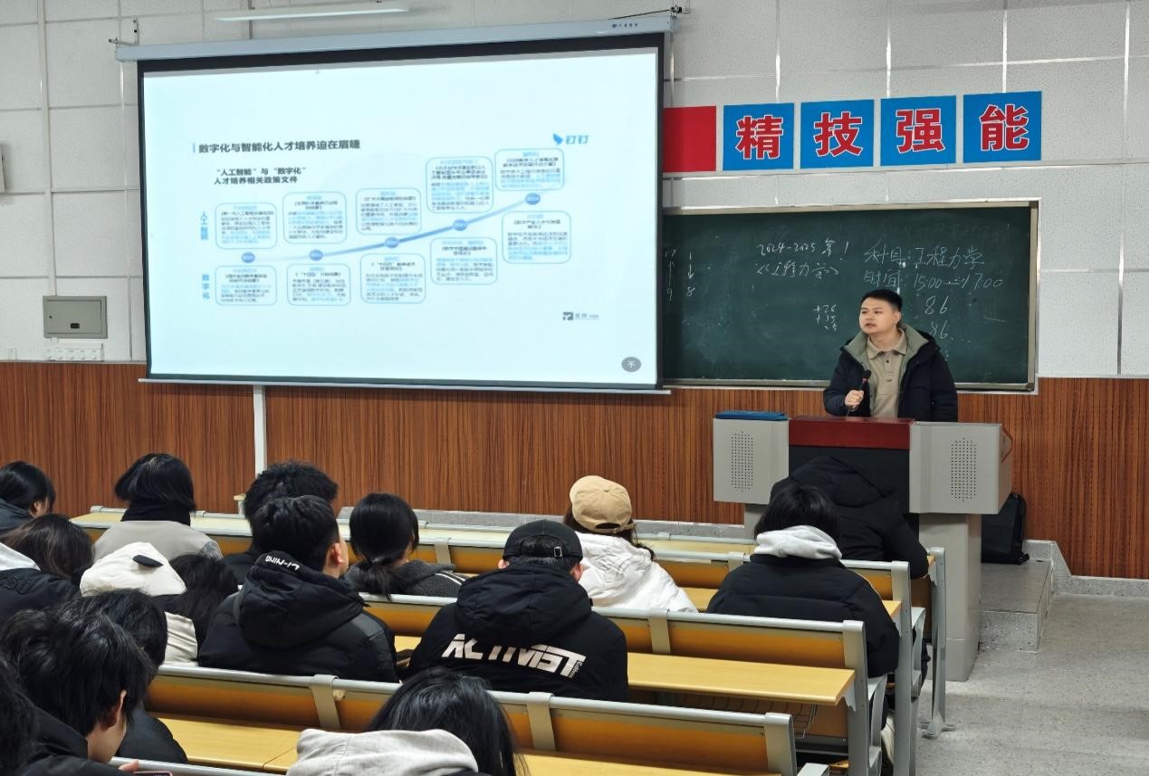 为加强公司信息技术类专业建设,培养更多的数字化人才,满足产教融合需求,深入了解数字化产业发展及人才需求变化,帮助公司员工更好地了解信息类专业的发展趋势,明确未来职业规划。1月8日,伟德bv国际体育官方网站在综合楼409教室举行“智能制造行业数字化人才发展现状与未来趋势”报告会,特邀陕西数域数字技术有限公司软件工程师白海龙主讲,2023、2024级计算机应用技术、大数据技术、人工智能技术应用专业同学参加。